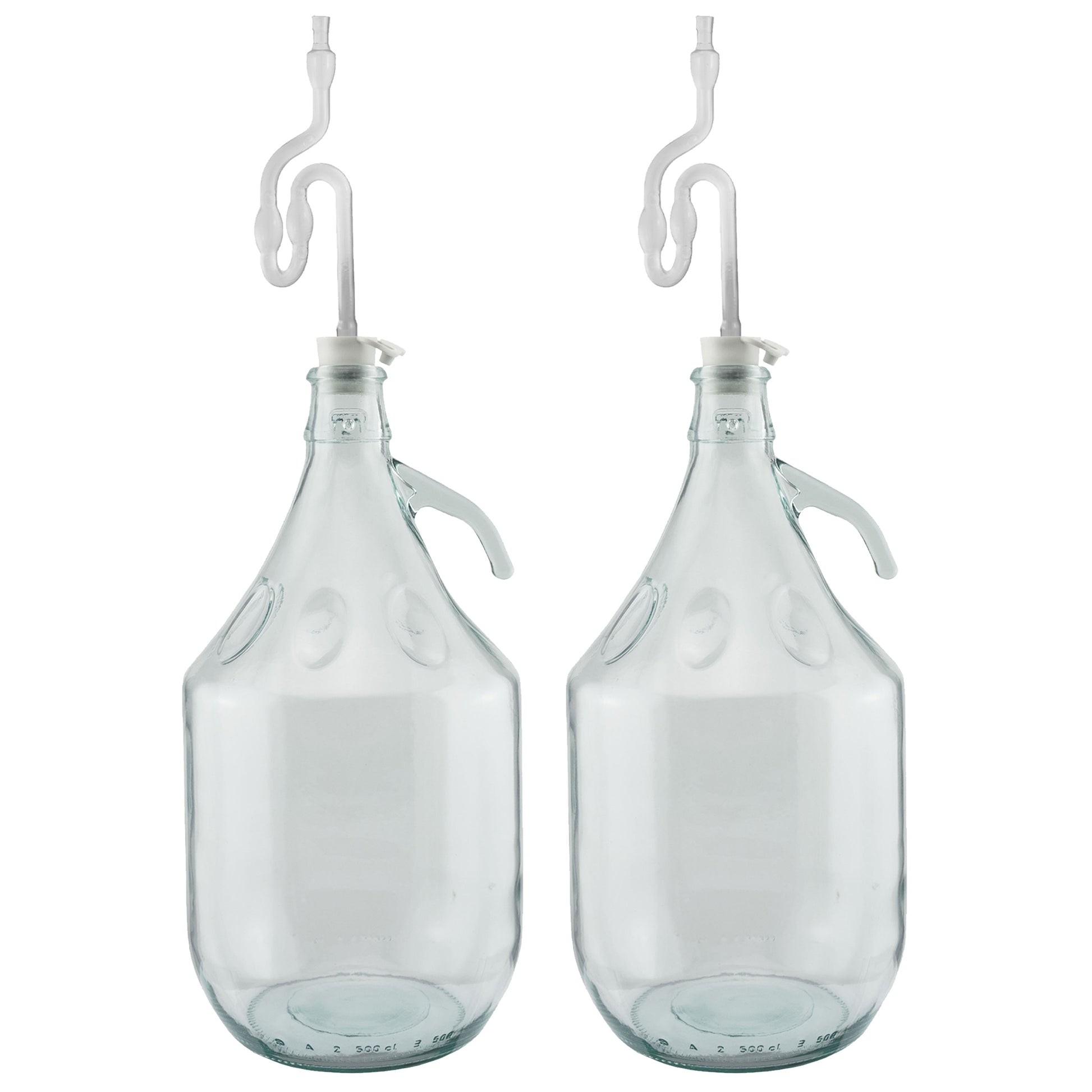 Set of 2 Plain 5L Glass Demijohns Complete With Airlock and Bung