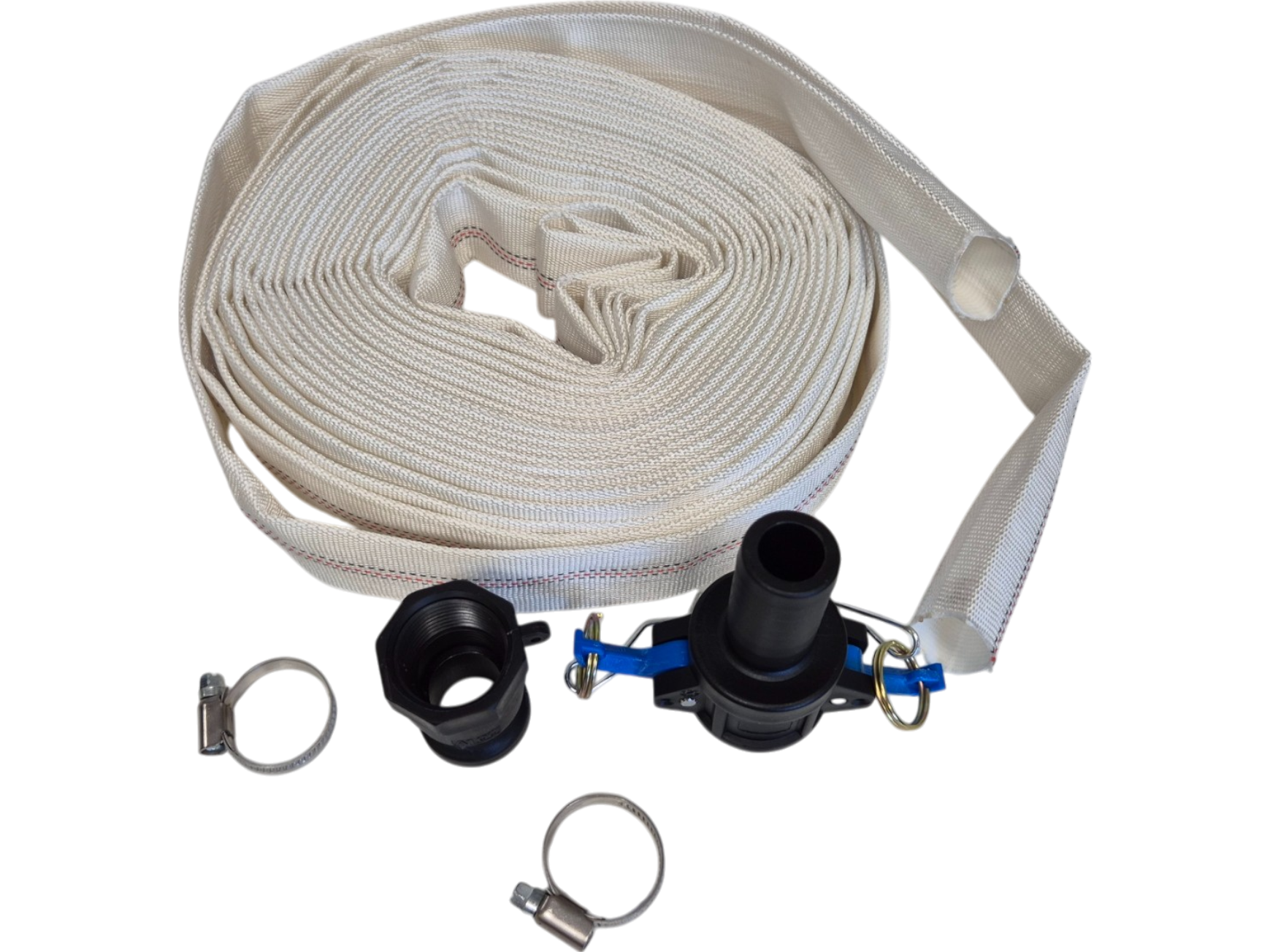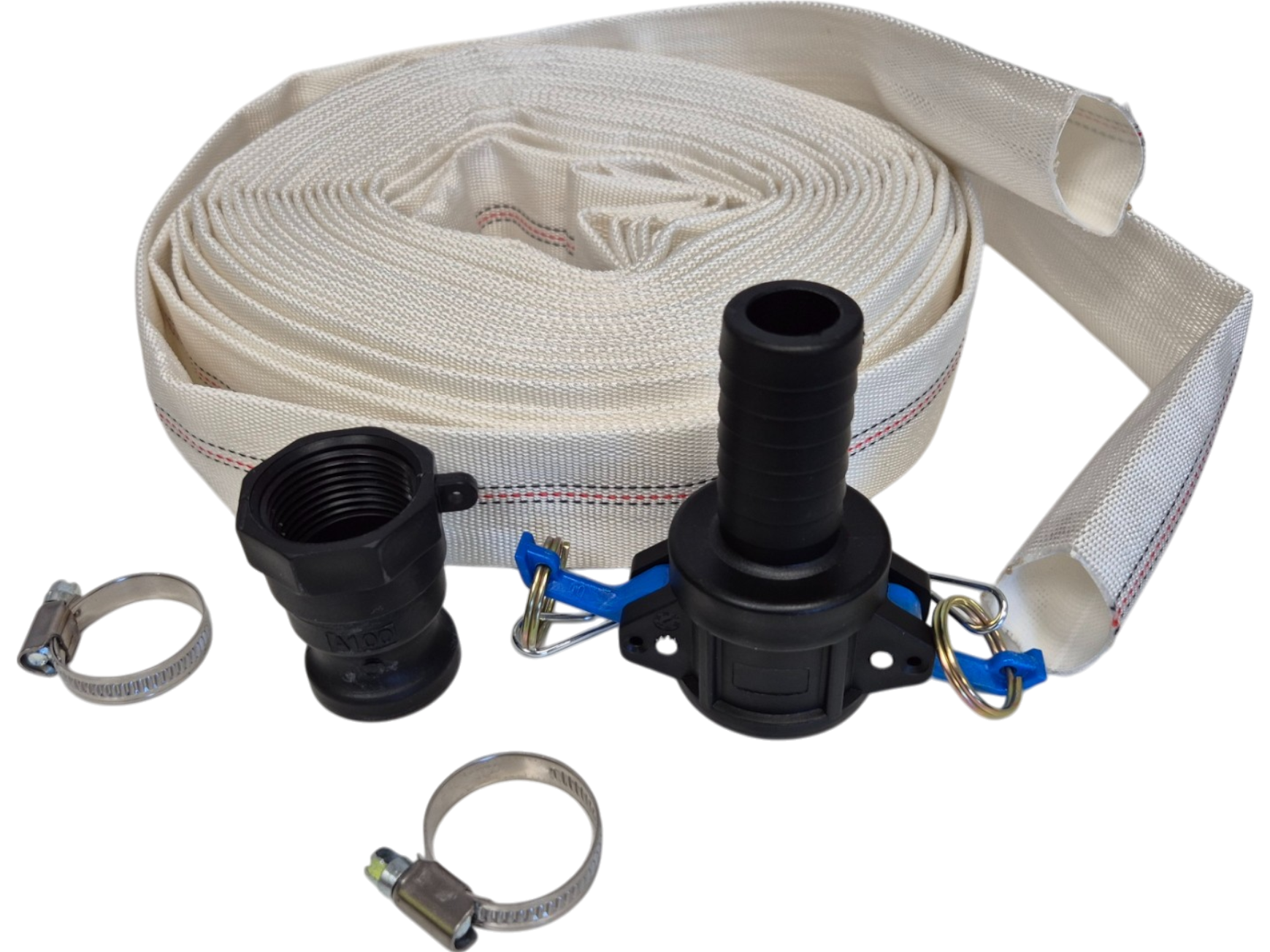 Included in the set are Camlock Type C and Camlock Type A fittings, ensuring secure and fast hose connections. Paired with two hose clips, the components are tailored to simplify the setup and enhance overall performance, making this set a reliable choice for fluid transport tasks.