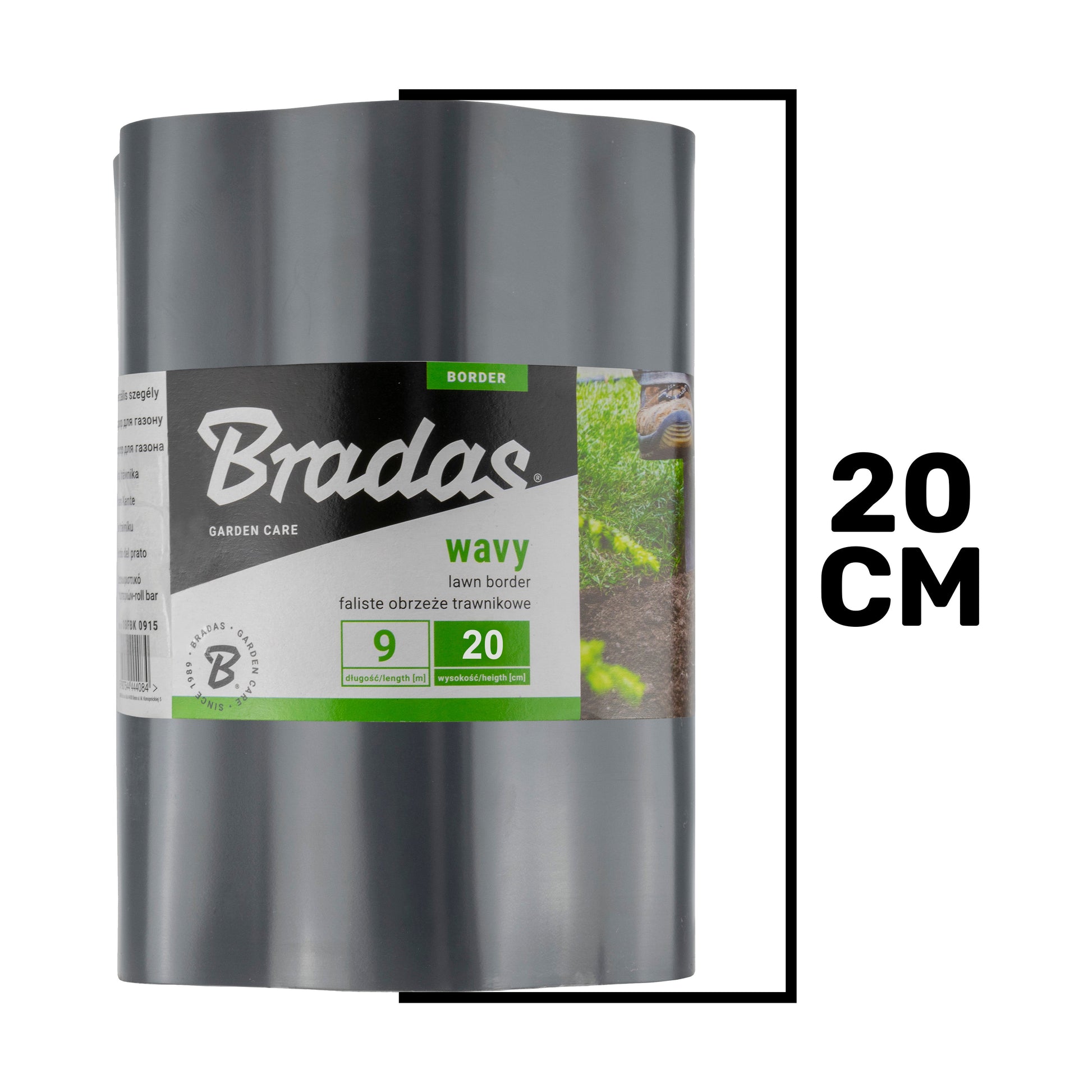 Standing 20 cm high (approximately 8 inches) and supplied in a 9‑metre roll (around 29.5 feet), this grey edging blends seamlessly with a variety of garden designs while offering generous coverage for lawns, pathways, and flower beds.