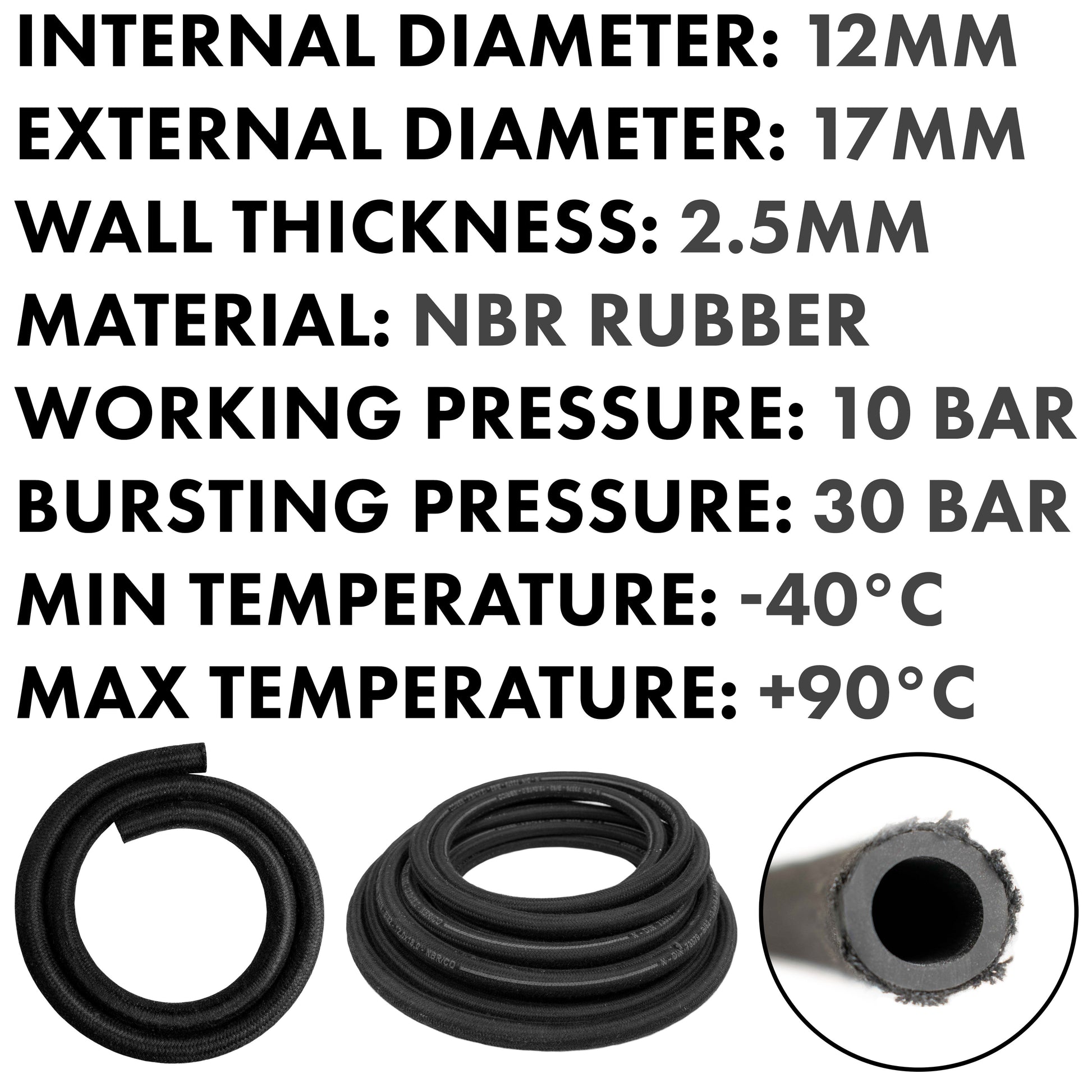 The DIN 73379 Type B hose is designed for medium-pressure use and offers low-permeation performance across a wide range of fuels, including petrol, ethanol blends, sour gas, diesel, and biodiesel. With a working pressure of 10 bar and a burst pressure of 30 bar, this NBR (nitrile rubber) hose provides excellent resistance to chemicals and fuel vapours, along with superior flexibility. These qualities ensure reliable operation across demanding fuel system applications.