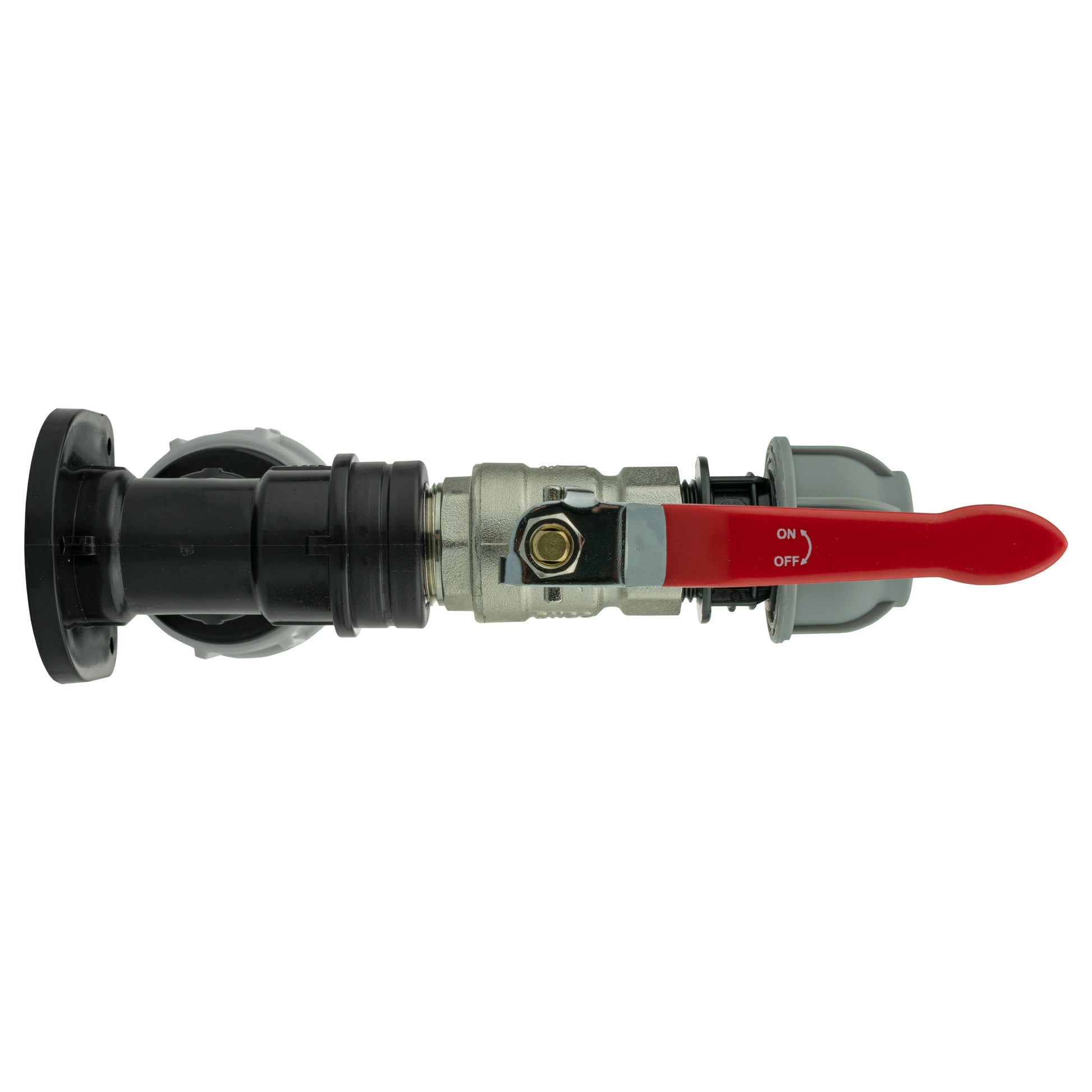 25mm MDPE Wall Flange Set with Lever Valve and 20mm MDPE Straight Fitting